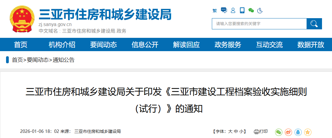 三亚市住房和城乡建设局:关于印发《三亚市建设工程档案验收实施细则(试行)》的通知